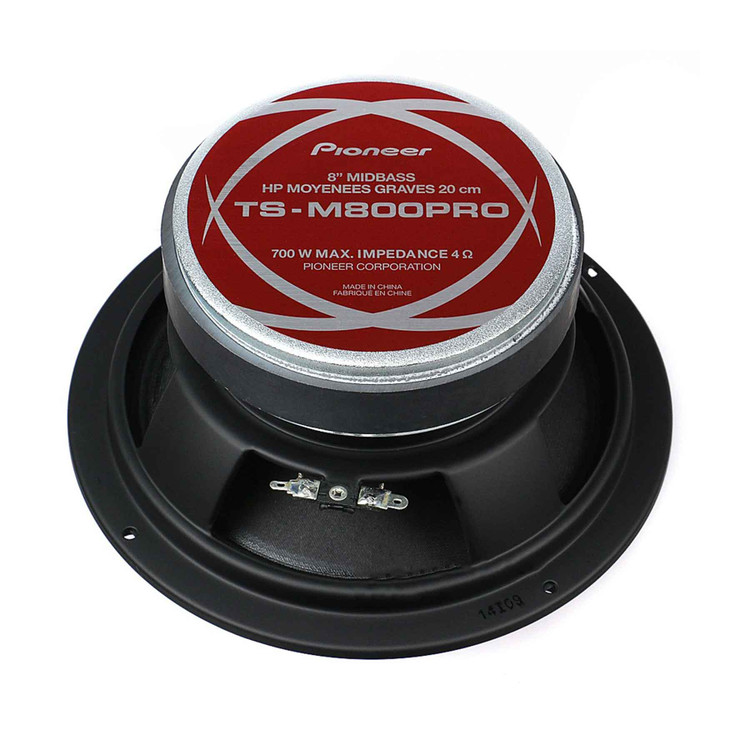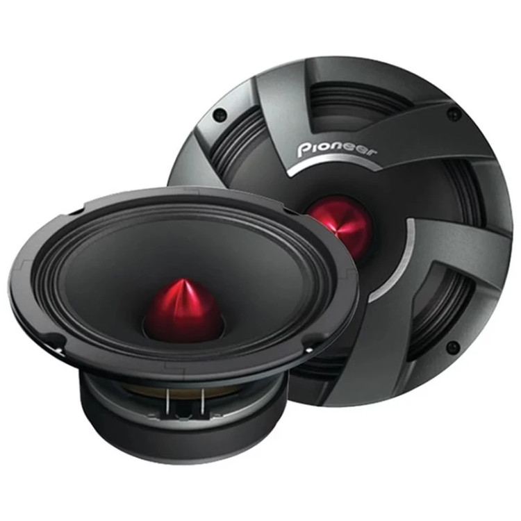 Pioneer TS-M800PRO یکی از گزینههای قدرتمند در دسته Mid-Bass های برند پایونیر است. این اسپیکر ۸ اینچی از سری "PRO" طراحی شده است تا صدای قدرتمند، خروجی بالا و کیفیت بیکموکاست ارائه دهد. بدنه با قاب فلزی مقاوم، مخروط کاغذی سبک (pulp) و مگنت بزرگ، قابلیت بازتولید دقیق جزئیات صوتی در محدوده میدرنج را فراهم میکند.