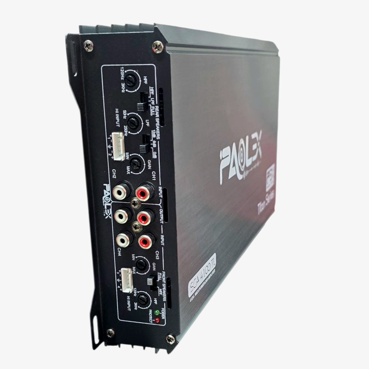 آمپلیفایر Paolex SCA 4100 TL برای کسانی مناسب است که دنبال یک گزینه با عملکرد مطمئن برای اسپیکرهای فولرنج یا استیج کوچک هستند. توان واقعی نسبی در 4 اهم برابر 100 وات برای هر کانال عملکرد خوبی به ویژه در باندهای درب یا تریم خودرو دارد، و اگر امپدانس سیستم به 2 اهم بیاید، توان هر کانال به ۱۴۰ وات افزایش پیدا میکند.