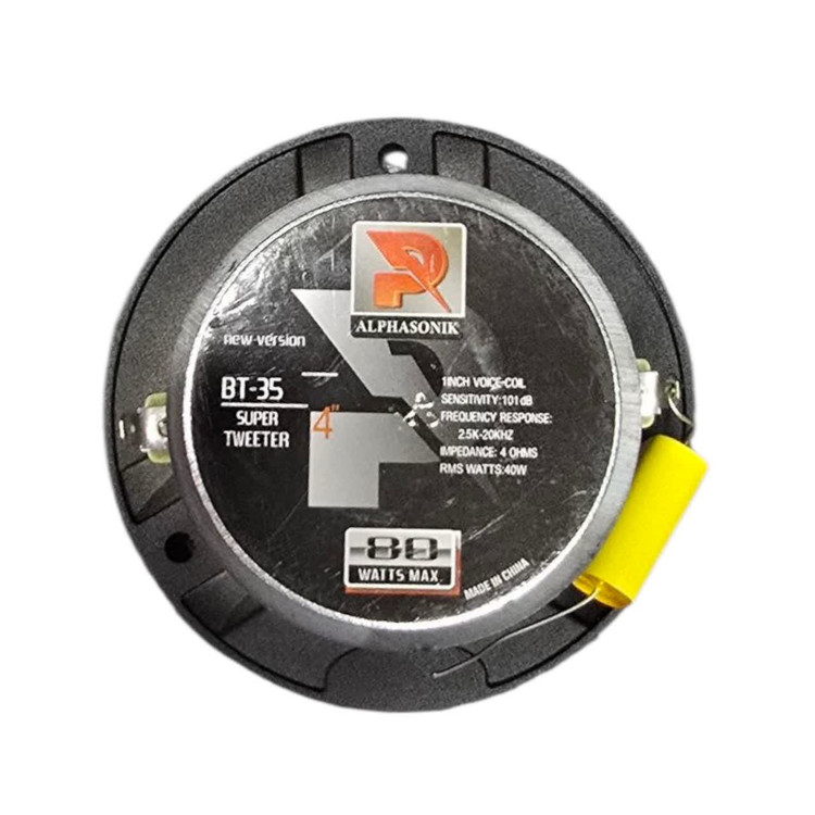 سوپر تویتر آلفا سونیک مدل BT35 یکی از قطعات صوتی ارتقا سیستم صوتی خودرو است که برای بازتولید فرکانسهای بالا و افزایش وضوح صدا در موسیقی طراحی میشود. این مدل معمولاً در دسته سوپر تویتر (Super Tweeter) قرار میگیرد که هدف آن تقویت جزئیات و شفافیت موسیقی در فرکانسهای بالا است، چیزی که بلندگوهای معمولی بهتنهایی قادر به تولید دقیق آن نیستند